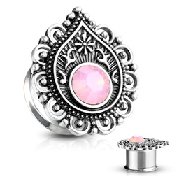 Dilatador Túnel de Acero Ornamental con Opalite Rosa